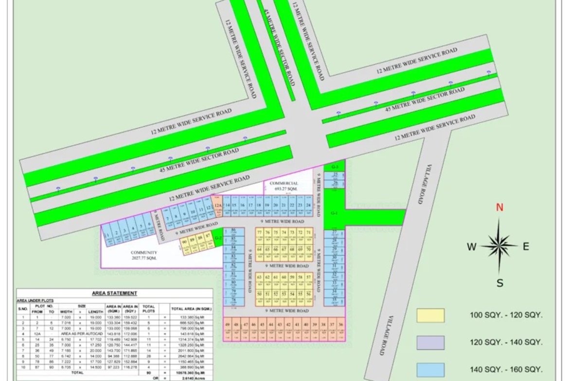 - Infrastructure: Features 9-meter-wide internal roads, proper drainage systems, and essential utilities like power backup and water storage.