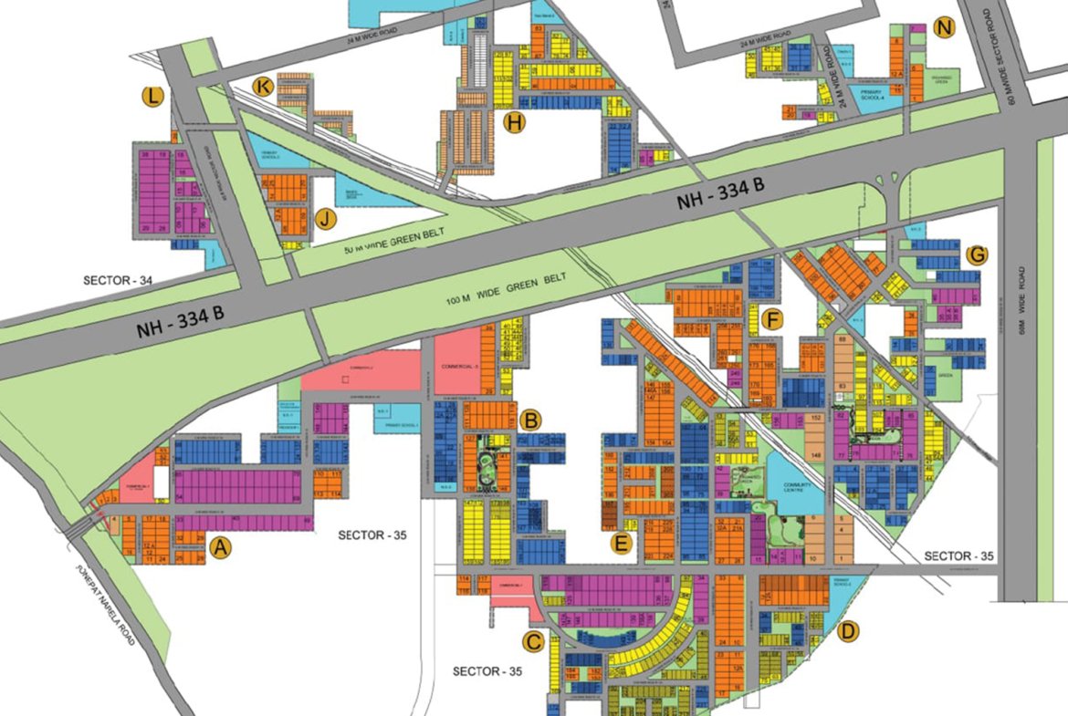 - Green Living: One of the greenest townships in the Delhi/NCR region, with over 1 lakh trees planted and expansive landscaped parks in every blockInfrastructure: Features 24-meter wide internal roads, underground cabling for power and utilities, and well-lit street networks